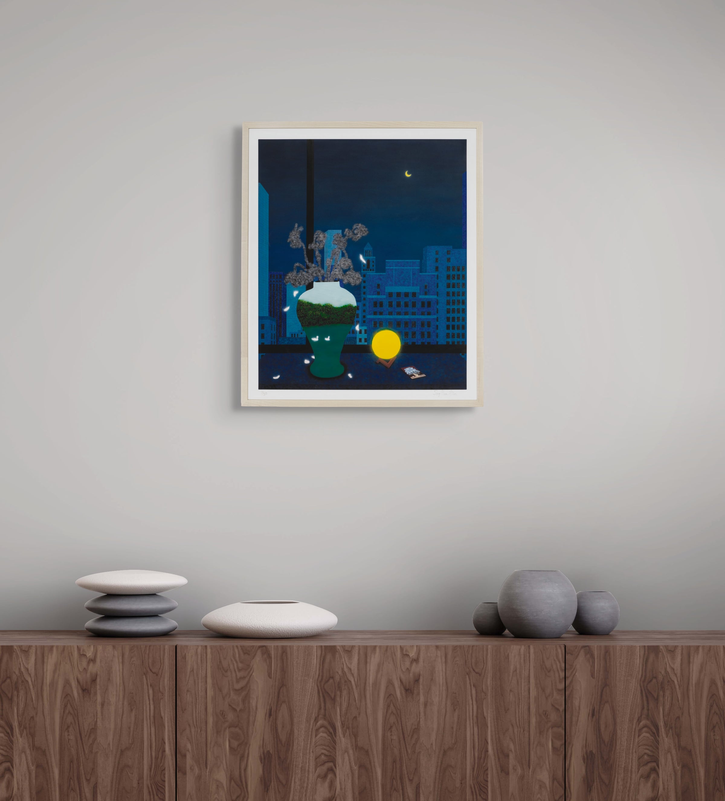 Sung Hwa Kim, Still Life with Jar, Moon Lamp, and René Magritte Postcard, 2025; Signed and Numbered Limited Edition Print